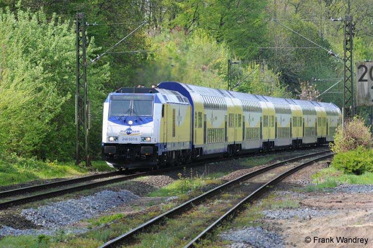 Der Metronom ME-39424 hat vor wenigen Minuten Stade verlassen und passiert in kürze den Haltepunkt Agathenburg, wo er keinen Halt einlegt.