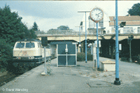 Wo hier in Aumühle sonst die Züge der Hamburger S-Bahn auf Fahrgäste warten, steht hier ein Lokbespannter Zug. Die Fahrzeiten werden nicht mehr durch den S-Bahn-Takt bestimmt und in Bergedorf war umsteigen angesagt, wenn es weiter in Richtung Innenstadt ging. Es war also zu empfehlen, den Fahrplan genau zu Studieren. Aufgrund dieser Tatsachen waren die Berufspendler aus dieser Region zu diesem Zeitpunkt etwas verärgert. (Sommer 1995)
