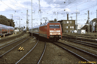 An einem schönen sonnigen Abend des 6. Mai 2001 durchfährt der InterCity 706 aus Basel mit der Baureihe 101 den Bahnhof Tornesch (Schleswig-Holstein). Sein Ziel ist Kiel HBF.